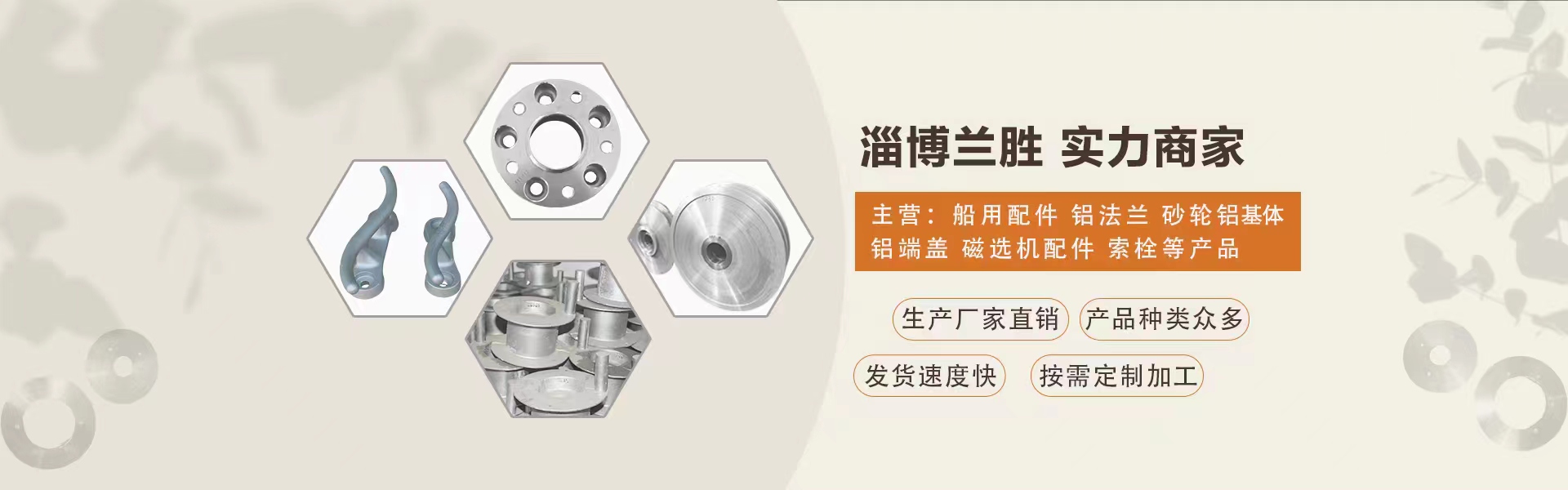 淄博蘭勝機(jī)械廠生產(chǎn)船用配件,鋁法蘭,砂輪鋁體,鋁端蓋,磁選機(jī)配件,索栓等普通鑄鐵、球墨鑄鐵等各種鋁制品。可依照客戶來圖來樣提供獨立生產(chǎn)模具、成品化驗等服務(wù)。質(zhì)量好,價格合理,交貨及時。